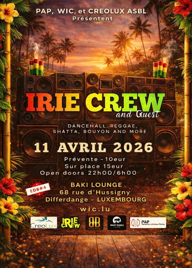 Venez vivre une nuit unique aux couleurs des Caraïbes et découvrir en avant-première l’esprit du festival EDB (L'Échos des Balafons), qui se tiendra le samedi 03 octobre 2026 au Forum de Luxembourg, à l’initiative de PAP ASBL, en association avec Creolux et West Indies Continent.